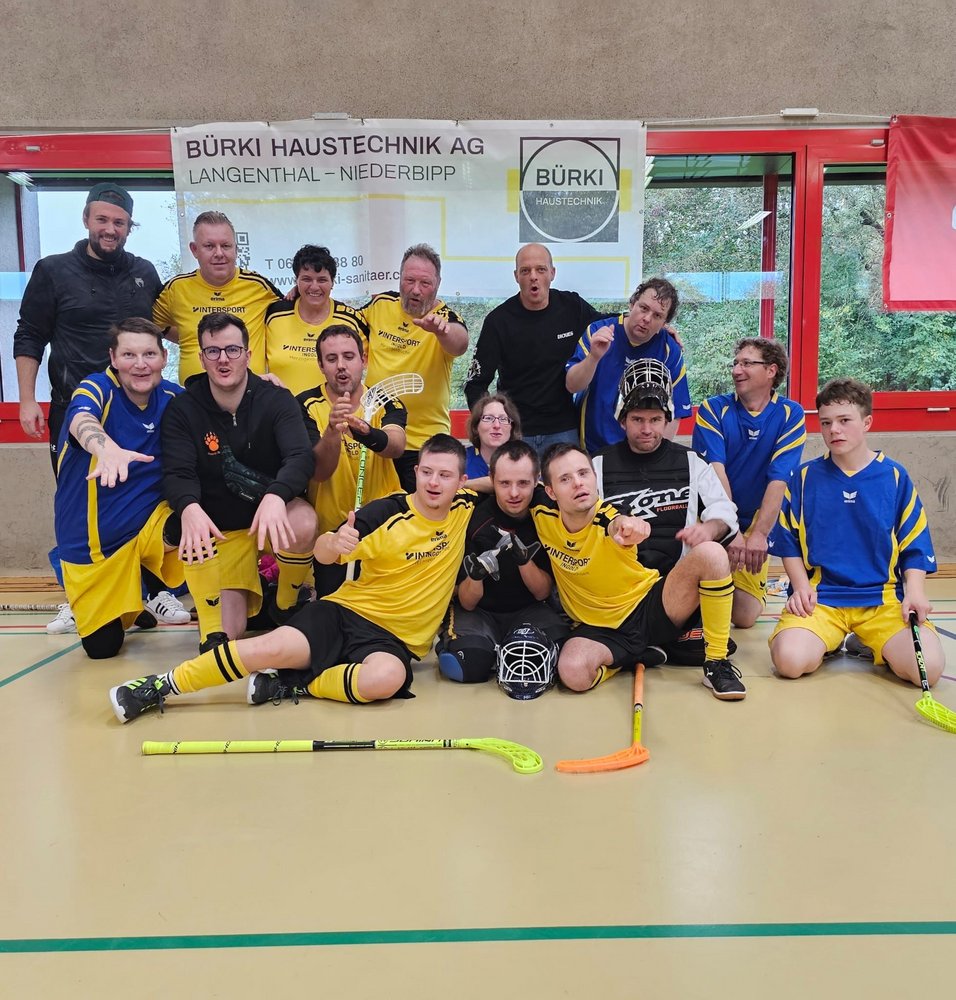 Wir sind die Lotzwiler Chnebler: ein Sportteam von und für Menschen mit Behinderungen. Jeden Mittwoch packen wir Schläger und Ball, stellen die Tore in der Halle auf und legen los.